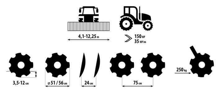 Дисковая борона Diskomat имеет очень широкий спектр применения в различных технологиях обработки почвы. Подходит как для проведения классического лущения после уборки урожая сельскохозяйственных культур на различной глубине до 18 см, также и для дальнейшей минимальной обработки почвы.